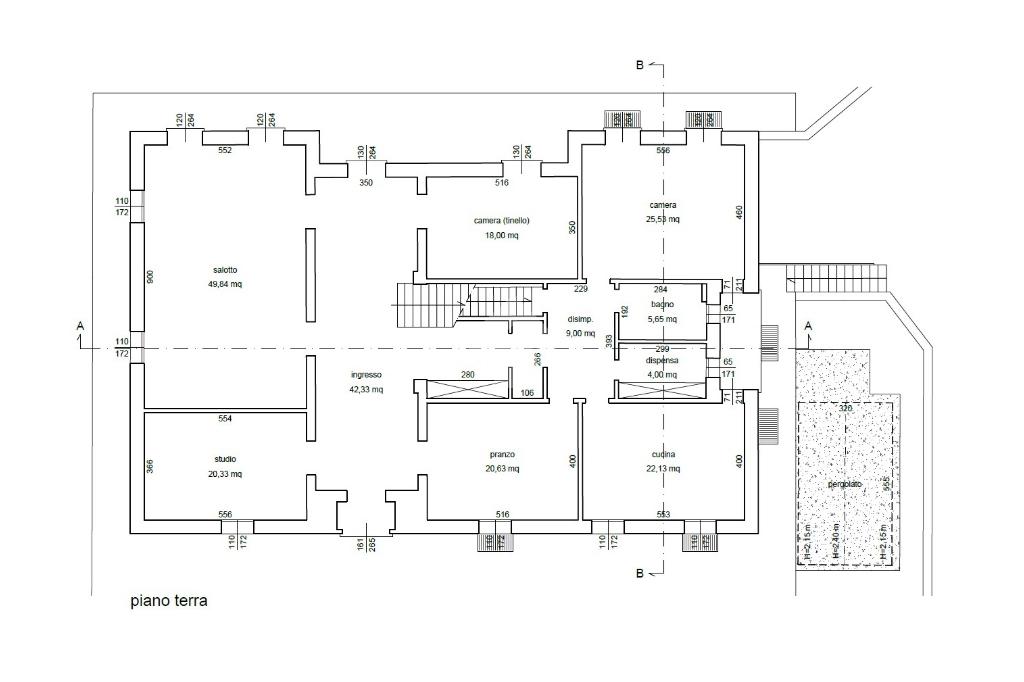 - piano terra con ingresso di 42 mq, salone luminoso di 50 mq con uscita verso la piscina, 2 cucine abitabili;